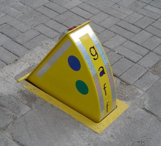 Hidrolik dairesel mantar bariyer: 60*28*55 cm( /- %15) kasa ebatlarında , yere gömülerek montaj yapılan, pasta dilimi şeklinde dairesel bir hareket ile yükselerek araç geçişini engelleyen, çelik gövde yapısına haiz, yüksek güvenlik için üretilmiş otomatik bariyerdir. CPU: Hidrolik mantar bariyerin tüm elektriksel elemanlarının bağlandığı , mikroişlemci mimarisinde imal edilmiş , değişken koşullara ve kullanım şekillerine göre ayar kabiliyetine sahip anakarttır. Pvc Kutu: CPU ve diğer ek elektronik kartların ve kabloların içine yerleştirildiği , IP standartlarına uygun plastik esaslı elektronik kart kutusudur. Hidrolik Motor: Bariyer sistemini açıp kapatmak için gereken gücü üreten hidro – mekanik gruptur. Teknik Özellikler: Sistemin kalkan ölçüleri ; kalkan yarı çapı 550 mm , kalkan genişliği 200 mm , açık durumdayken kalkan yüksekliği 450 mm , kalkanda kullanılan sac kalınlığı üst ve ön tarafta 6 mm , yan saclarda 4 mm dir..( /- %5) Sistemin dış kutu ölçüleri; 60*28*55 cm( /- %15) dir.. Sistem hidrolik olarak açılıp kapanır.. Açılma kapanma hızı 10-15 sn arasındadır. Sistem inme ve kalkma sırasında bir engele çarpar ya da sıkıştırsa hidrolik motor sistemi basıncı boşa geçecek ve motora ve mekanizmaya zarar vermez. Bariyer açık veya kapalı durumda iken el ile kesinlikle indirilip kaldırılmaz. Sistem çok uzun süre açık durumda bile kalsa , yükseklik kaybı olmaz, aşağı doğru düşmez.Bariyer minumum 20 ton aks yüküne dayanıklıdır. Ön taraftan araç çarpmalarında 600 joule , arka kısımdan çarpmalarda 400 joule eksene dikey darbeye mukavimdir. Daha sert darbelerde ise motor kulağı tespit pimi kırılarak motora ve gövdeye daha büyük zarar gelmesini engeller. Tüm mekanik aksamlar elektrostatik toz boyalıdır. Bariyer gövdesine gece görülmeyi kolaylaştıracak fosforlu uyarı folyoları yapıştırılmıştır. Gövdenin üst kısmında gün ışığı ile şarj olacak ve karanlıkta kırmızı renkte ışık vererek yanıp sönen metal gövdeli uyarı lambaları vardır. Bariyerin ön kısmında ankastra şekilde dizayn edilmiş 12 ya da 24 VAC voltajda , 50 watt gücünde gece ve gündüz yanacak armatür lambalar vardır.. Elektrik kesintisine ise bariyer , bir anahtar yardımı ile manuel boşa geçirilip, kapatılabilir. Hidrolik motor pistonu açık ve kapalı konum dayamalarına ( limitlerine) geldiğinde hidrolik olarak otomatik boşa geçer. Bu basınç her iki yöne de ayrı ayrı ayarlanabilir. Cpu mikroişlemci mimarisindedir. Kablo girişlerine sökülebilir klemens vardır. Cpu üzerine motor ve 24 VAC güç için ayrı ayrı sigorta konulmuştur. Cpu üzerinde ayarlanabilir motor koruma ve otomatik kapanma süresi , otomatik kapanma yönü seçimi vardır. Cpu üzerinde 24 VAC harici güç çıkışı vardır. Sistem; fotosel , trafik armatürü (kırmızı-yeşil), flaşör uyarı lambası, lab dedektör, uzaktan kumanda alıcı kart , sabit kablolu buton , ayarlanabilir zaman saati, proximity kart v.b gibi ek elemanlara uyumludur.Tek Cpu anakart ile minimum 3 adet gaff dairesel mantar bariyer kombine olarak çalışır.Tek Cpu ve grup rölesi kartı kullanılarak istenildiği kadar gaff dairesel mantar bariyer kombine olarak çalıştırılabilir. Kombine çalışan gaff dairesel mantar bariyerlerden herhangi biri ya da birkaçı arızalansa bile diğerleri çalışmaya devam eder. Cpu üzerinde çalışma ve durum bilgilerini gösteren led ler bulunmaktadır. Sistem mekanik olarak günlük minimum 300 adet manevra yapabilir. Gaff dairesel mantar bariyerlerin yan taraflarında toz fitili bulunur. Gaff dairesel mantar bariyerlerin üzerinde kilitli bir bakım kapağı vardır .İç kısımda birikebilecek toz ve kir temizlenebilecek ve ayrıca bu kapaktan her türlü bakım yapılabilir. Gaff dairesel mantar bariyer gövdesi tespit edildiği yerden sökülmeden ve ya demontaj edilmeden komple motor grubu bu bakım kapağından rahatlıkla sökülüp ve dışarı alınır. Mantar bariyer gövdesi içinde hiçbir şekilde analog veya digital limit sivici bulunmaz. Sistemin tümü 220 VAC / 50 HZ ( /- %20 ) enerji ile çalışabilir. Motor çalışma voltajı 220 VAC / 50 HZ ( /- %20 ) , motor gücü 375 watt ( /- %20 ) Tüm elektronik kartlar PVC su ,nem ve toz geçirmez bir kutu içerisine yer almaktadır. Ürün CE, TSE , ISO , AIDA ( Uluslar arası otomatik kapı üreticileri birliği ) normlarındadır.